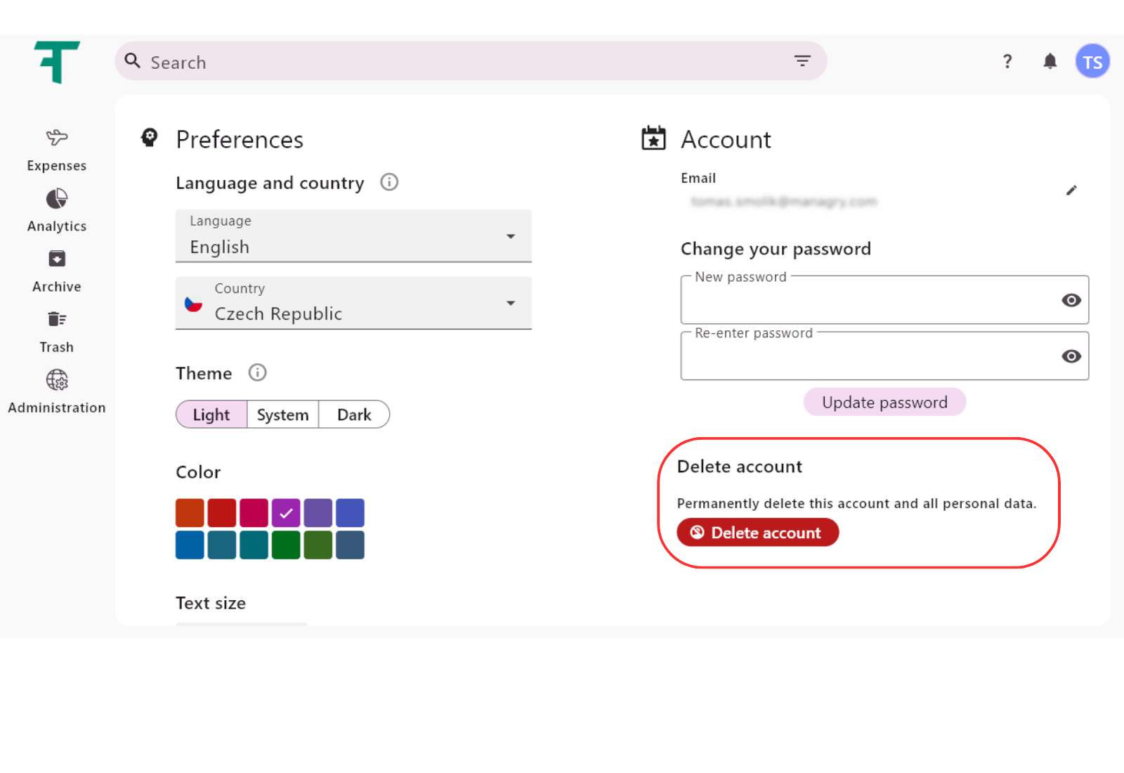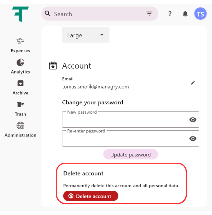 - It removes all your expenses, uploaded invoices, reimbursements, and other data from our systems.