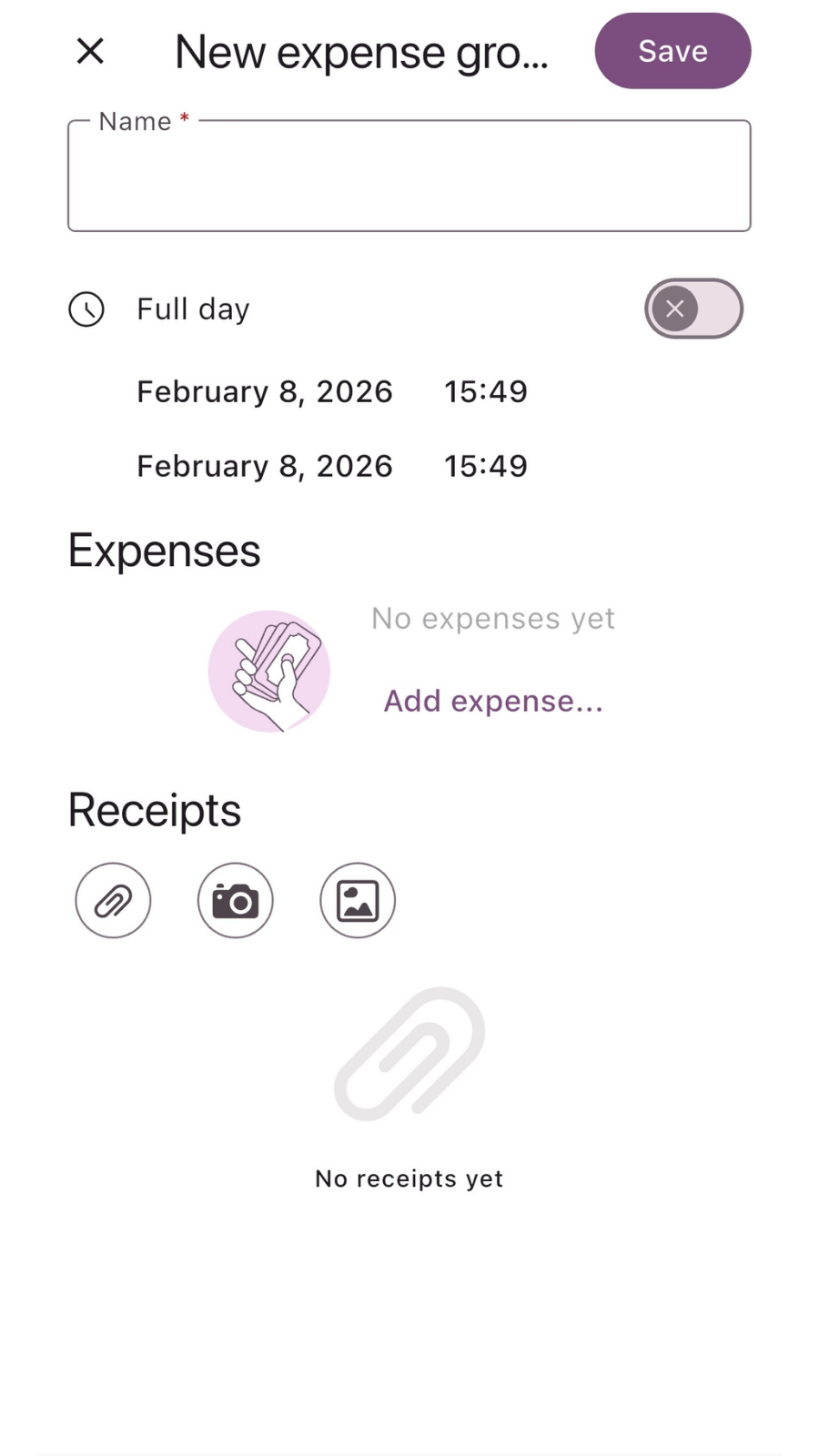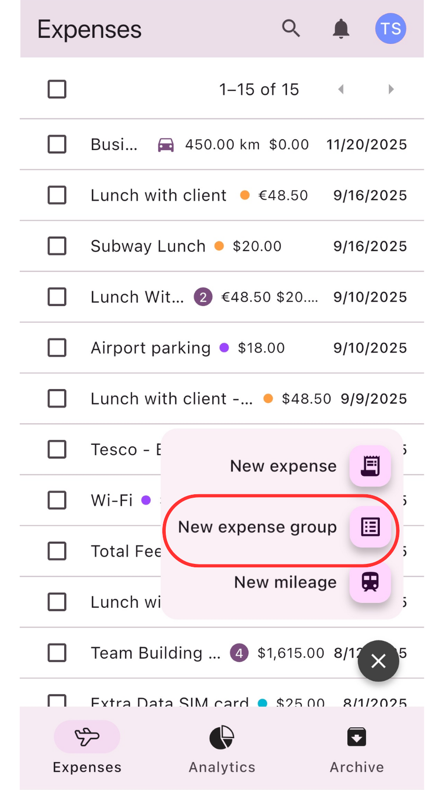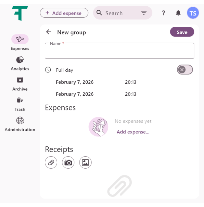 - Use the Add expense to start adding individual items to the group.
