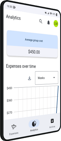 Track spending trends over time, within specific date ranges, or across expense groups. Turn your data into insights with interactive charts and customizable widgets that help you make smarter financial decisions.