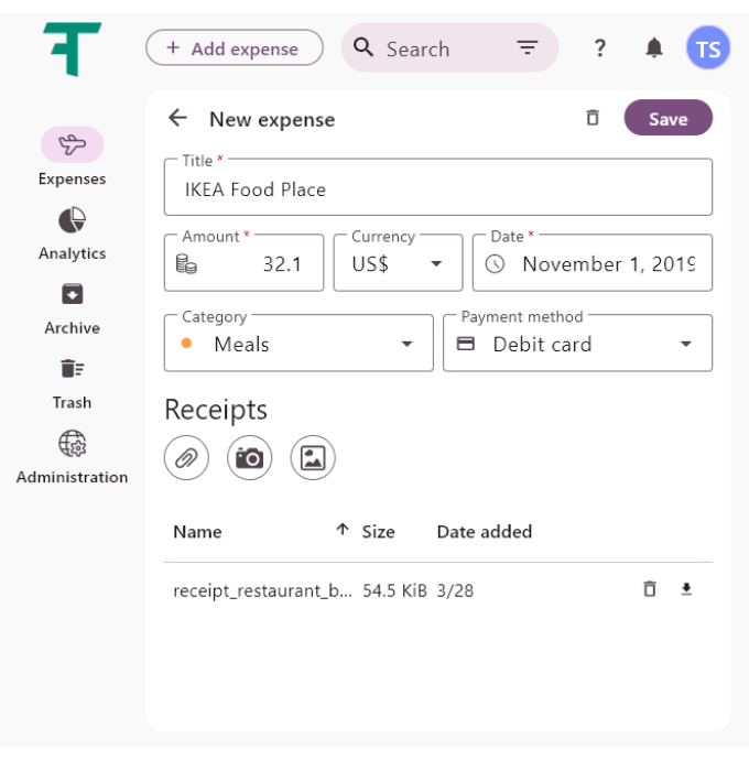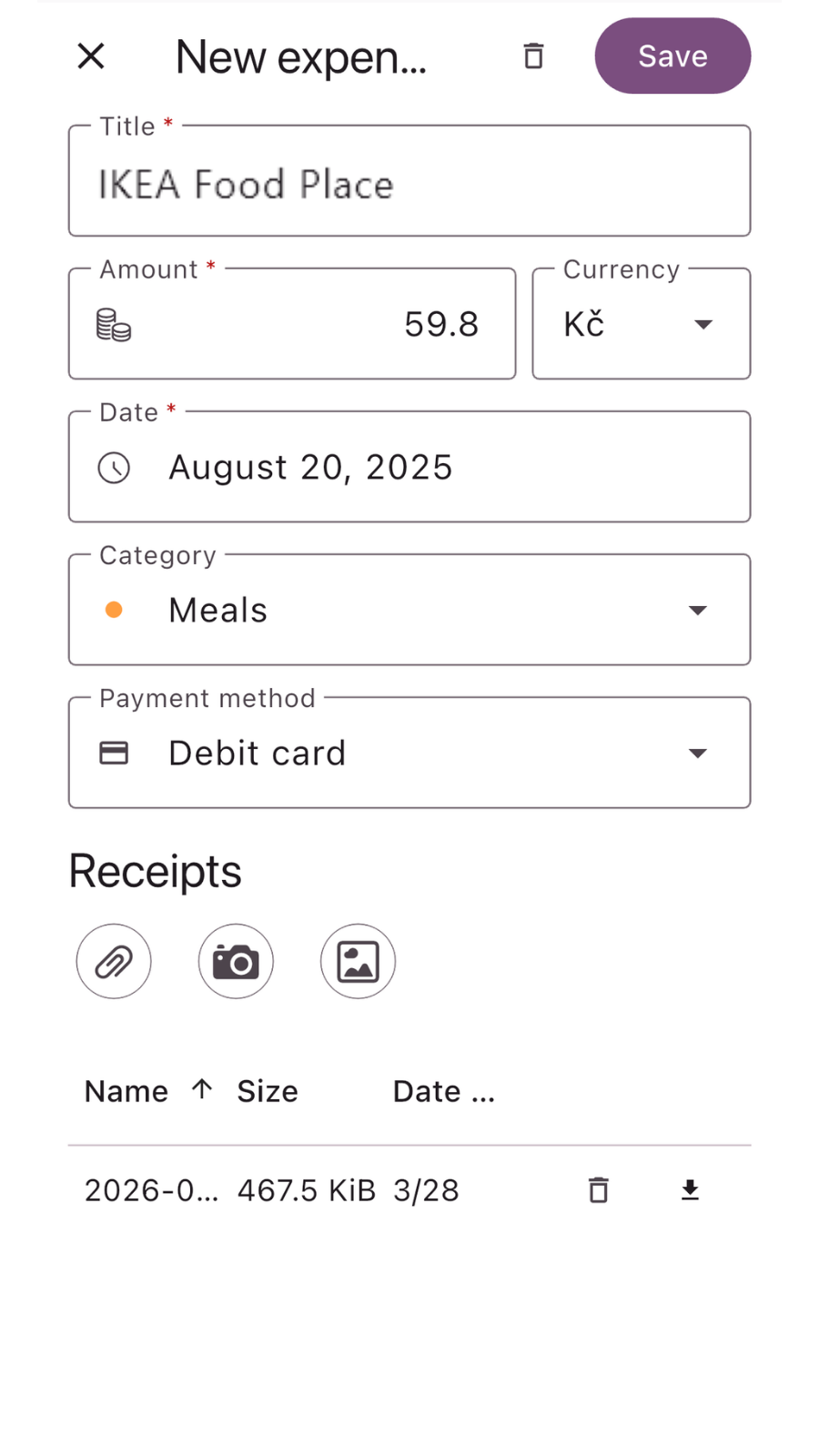 Skontrolujte extrahované údaje, zadajte vhodný názov výdavku a kliknite na Uložiť, aby ste ho uložili do systému.